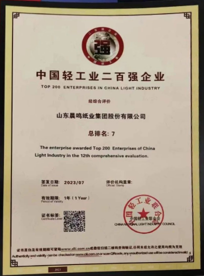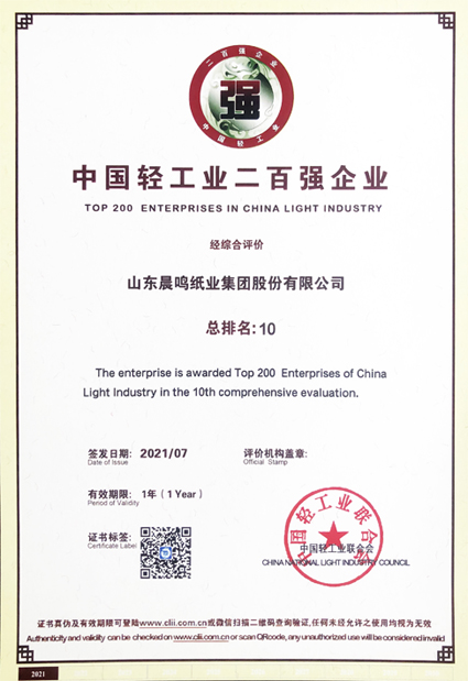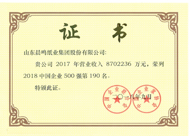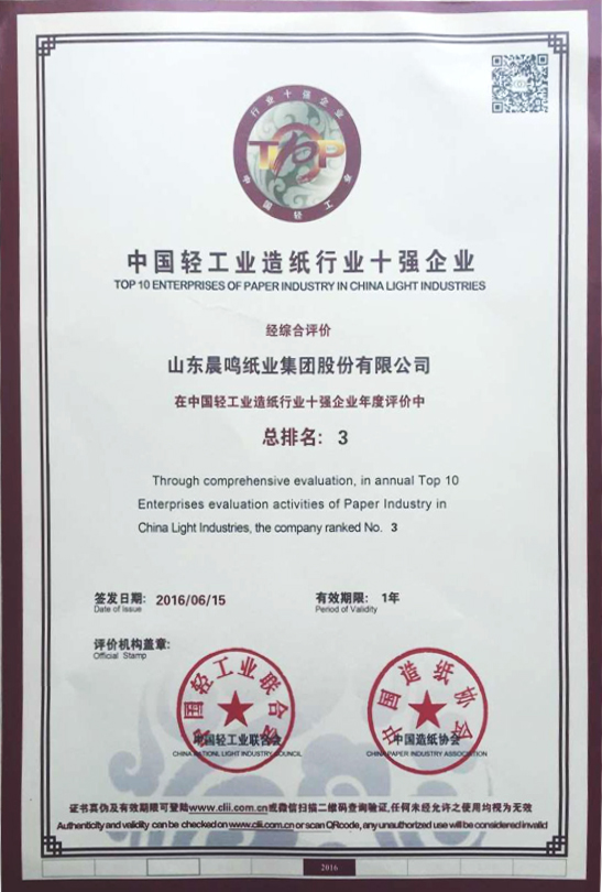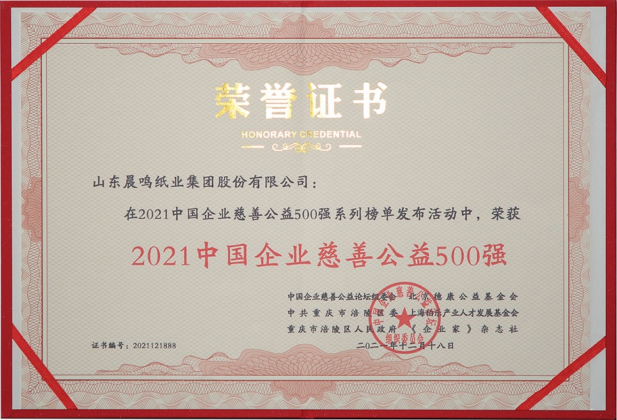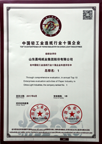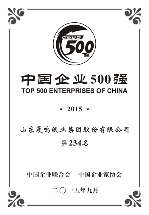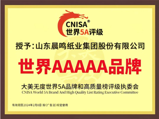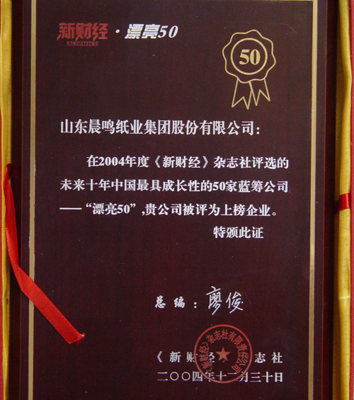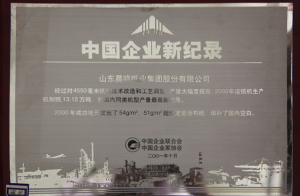 半個(gè)多世紀(jì)的探索和發(fā)展,讓晨鳴集團(tuán)榮譽(yù)滿冠。晨鳴先后榮獲中國(guó)企業(yè)500強(qiáng)、中國(guó)制造業(yè)500強(qiáng)、輕工業(yè)全國(guó)十佳企業(yè)、中國(guó)出口名牌、全國(guó)五一勞動(dòng)獎(jiǎng)狀、中國(guó)企業(yè)管理杰出貢獻(xiàn)獎(jiǎng)、全國(guó)生態(tài)文明建設(shè)十大新聞人物、全國(guó)精神文明建設(shè)先進(jìn)單位、中國(guó)造紙工業(yè)環(huán)境友好企業(yè)、中國(guó)企業(yè)集團(tuán)納稅五百?gòu)?qiáng)、中國(guó)工業(yè)行業(yè)排頭兵企業(yè)、全國(guó)造紙行業(yè)勞動(dòng)關(guān)系和諧企業(yè)、山東省循環(huán)經(jīng)濟(jì)示范單位、低碳山東標(biāo)桿企業(yè)等多項(xiàng)榮譽(yù)稱號(hào)。