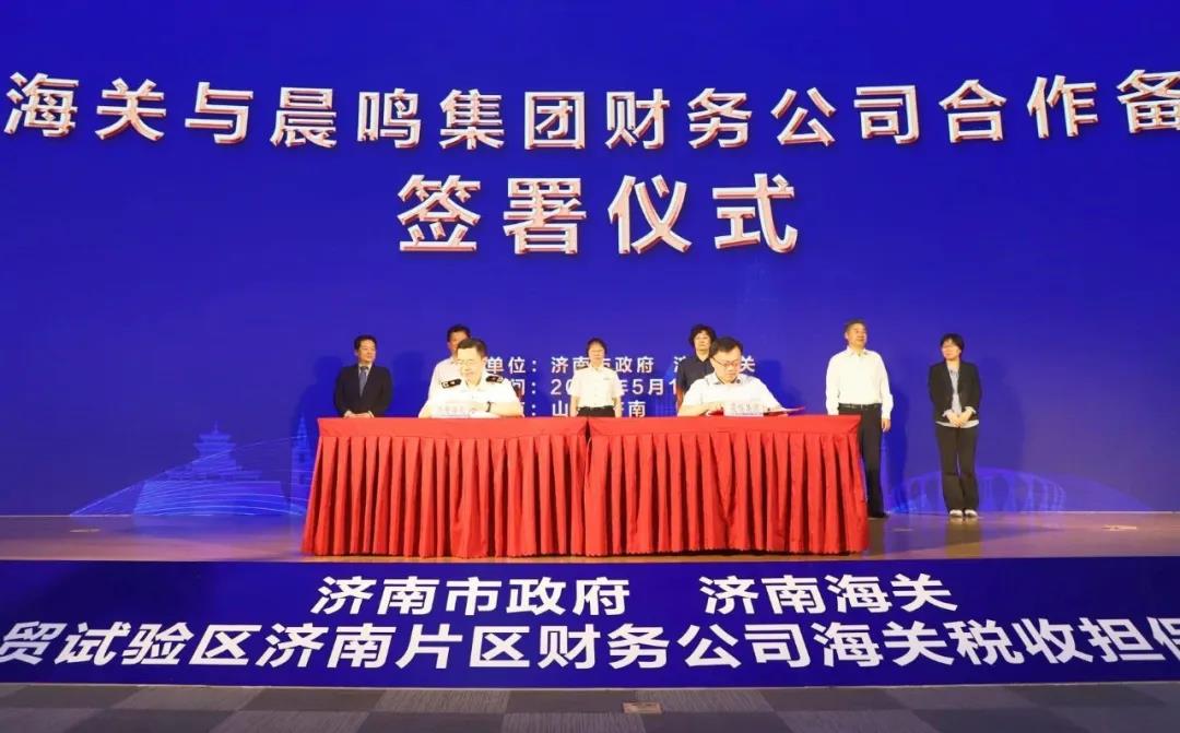 5月19日,濟南市政府、濟南海關(guān)支持山東自貿(mào)試驗區(qū)(濟南片區(qū))財務(wù)公司海關(guān)稅收擔(dān)保啟動儀式在浪潮科技園隆重舉行。會議由濟南市政府辦公廳黨組成員楊傳軍主持。會上,晨鳴紙業(yè)榮獲首批濟南海關(guān)企業(yè)集團財務(wù)公司試點企業(yè)。財務(wù)公司董事長李棟代表晨鳴集團與濟南海關(guān)簽署《濟南海關(guān) 山東晨鳴集團財務(wù)有限公司關(guān)于參與稅收擔(dān)保改革試點助力濟南自貿(mào)區(qū)建設(shè)合作備忘錄》,晨鳴集團總裁助理李康作為企業(yè)代表共同拍啟“企財?!甭涞刈再Q(mào)區(qū)的啟動球。