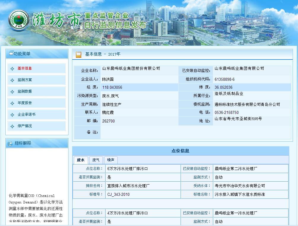 山東晨鳴紙業(yè)集團(tuán)廢水、廢氣自測公示161205
